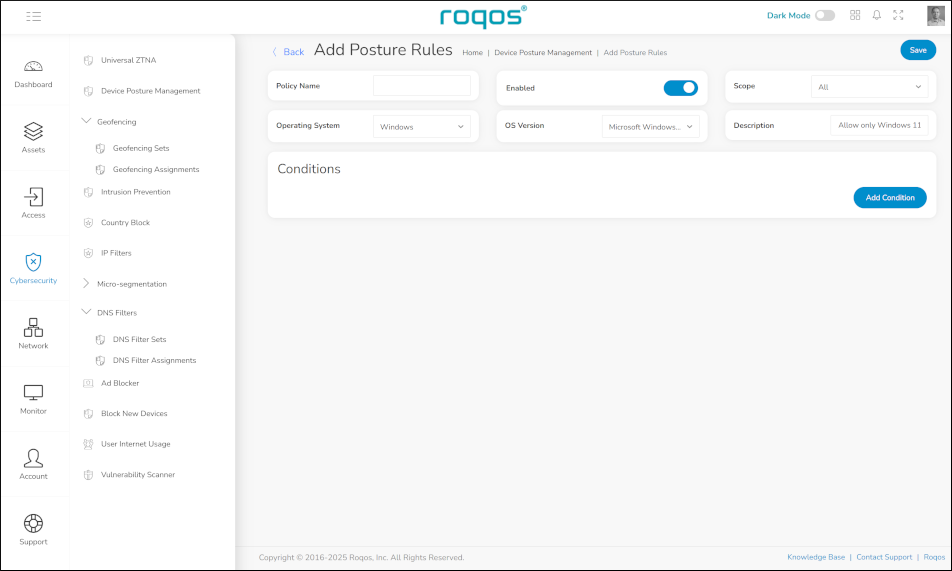 With Roqos DPM check whether a device is updated and secure enough to access a network, application, or cloud resources.